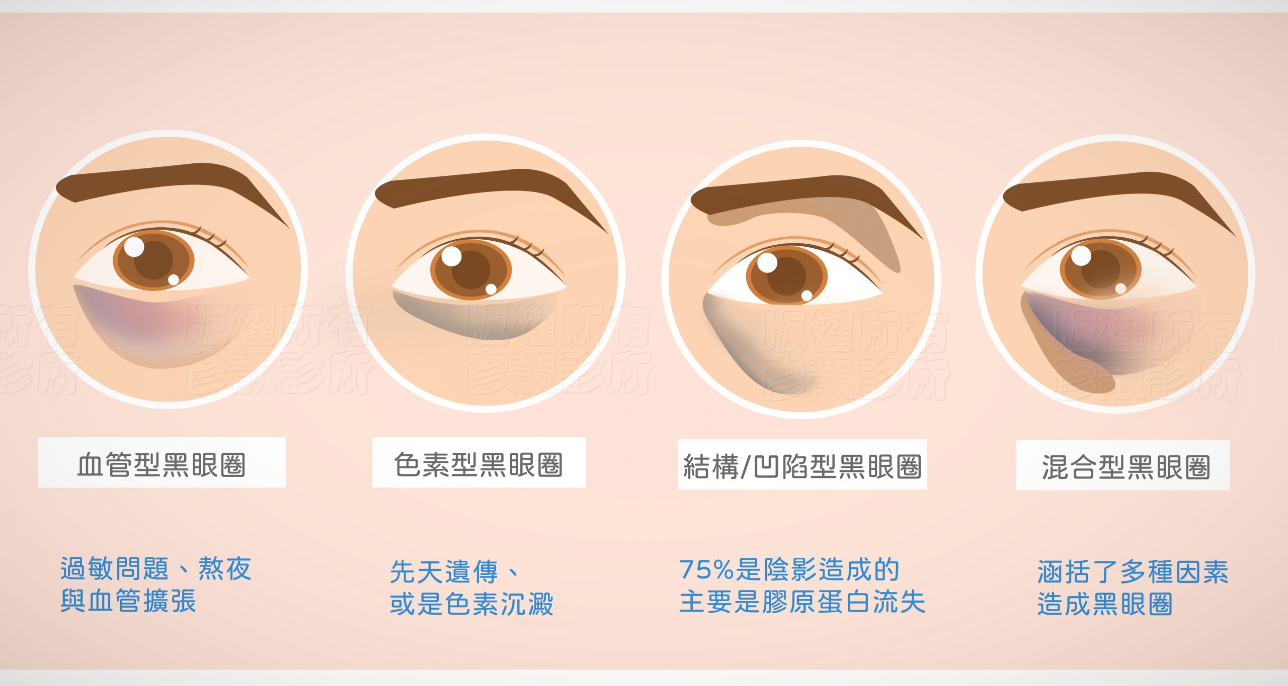 黑眼圈-血管型黑眼圈、色素型黑眼圈、凹陷型黑眼圈都可以藉由玻尿酸改善