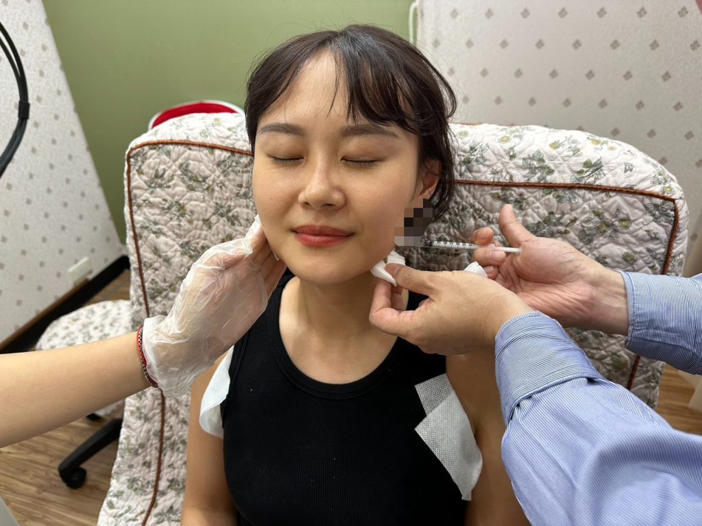開始施作之前,會先在要注射的部位塗上舒緩膏,等待約15~20分鐘就可以開始瘦小臉的療程了~