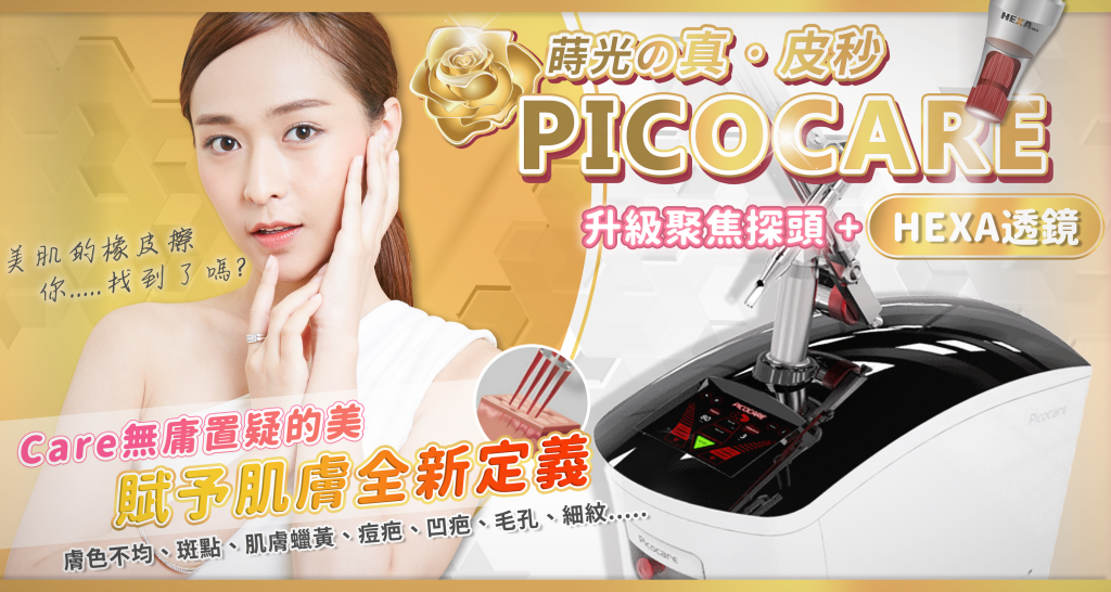 Picocare是一種皮秒雷射技術,皮秒(Picosecond)從英文翻譯而來,它利用非常短的脈衝時間(皮秒級別)來進行治療。一般傳統雷射的脈衝時間是奈秒「10-9秒」,而皮秒雷射則是皮秒「10-12秒」,意思是只需要花一秒就可以擊碎黑色素,比傳統雷射快上1000倍,皮秒雷射的能量增強且更集中、更精確地傳遞到皮膚組織中但熱能確是降低的,對於效果與效率大大提升,難怪會成為雷射界的指定機種。