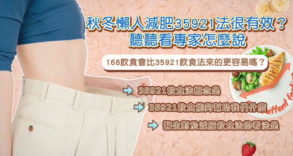 其實『35921』和『168減重飲食』都是屬於減肥法之一,但35921的減重飲食策略會比較符合大眾需求,我們都知道168飲食,是需要空腹16小時並且把一天當中的飲食集中在在8小時內攝取完,那這就有可能會導致一個問題,那就是我是不是在8小時內吃什麼都沒關係?很多人就會曲解在8小時內進食的食物不需要去挑選,並且可能在8小時內不只吃了三餐甚至可能四、五餐,這樣反而會使168飲食法無法發揮什麼效果甚至更胖,因此我們希望不管在任何的飲食當中,都是以健康的原型食物為主,再來就是剛進入減肥計畫的人,突然開始執行168飲食,容易在空腹16小時的時候產生飢餓感,因為你的身體已經習慣你原本的飲食方式,因此你突然朝168開始執行的時候,身體就會不適應,甚至靠意志力方式去壓制飢餓感反而會產生好像更餓的跡象,所以會建議剛開始進行減重的人不要直接嘗試168飲食法,我們可以先從35921的飲食法開始執行,會比較容易適應也較輕鬆。
